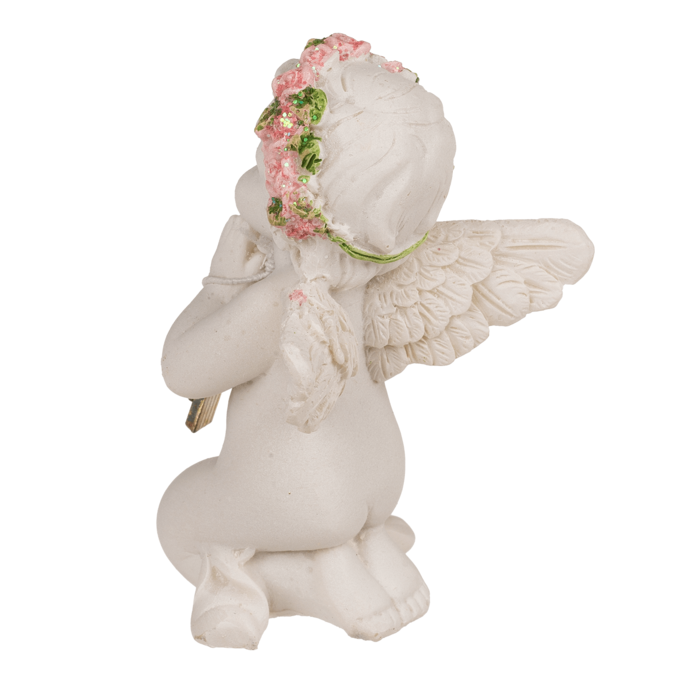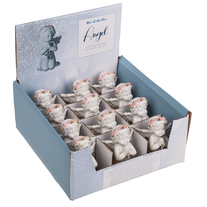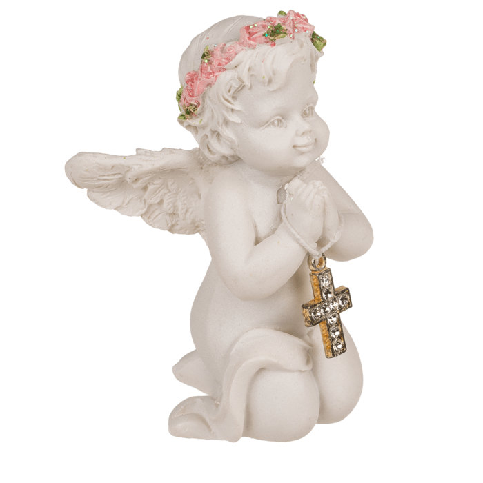 • Figurka klęczącego anioła z różowym różańcem