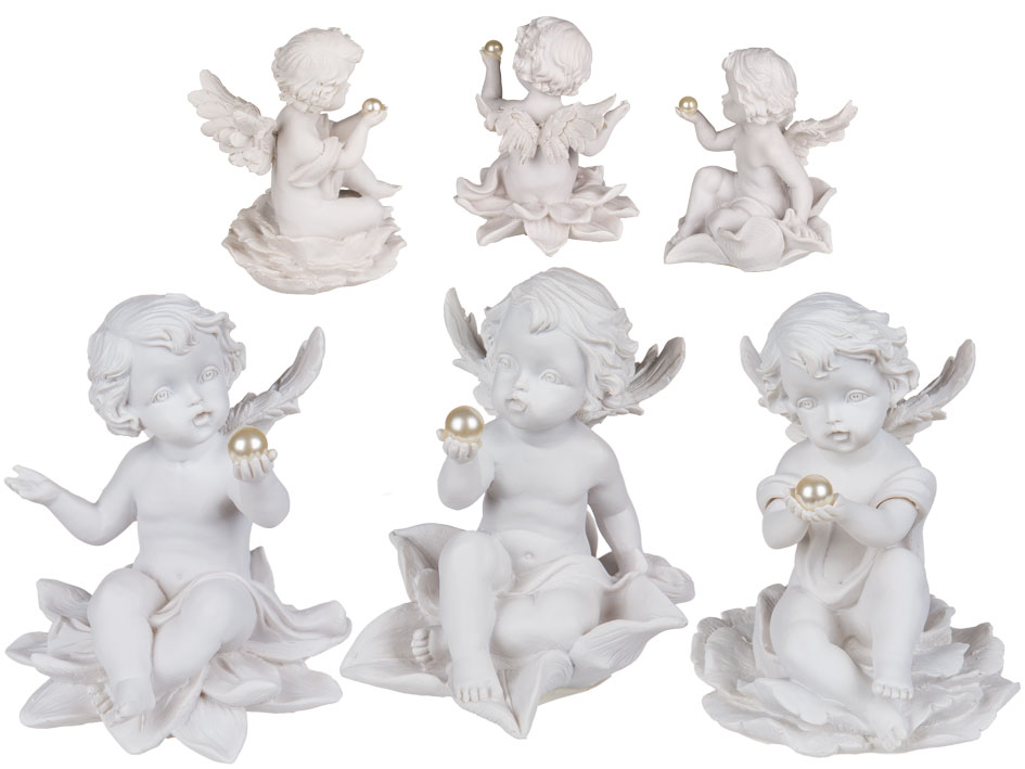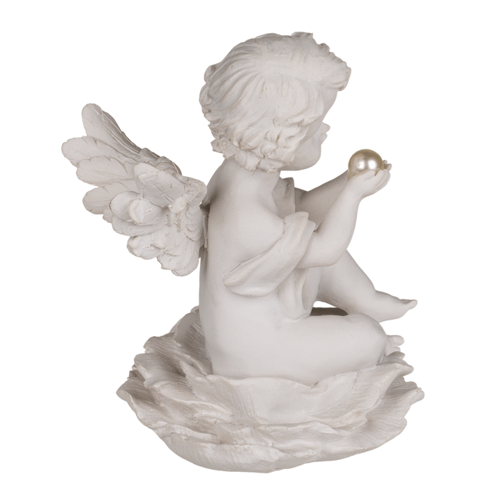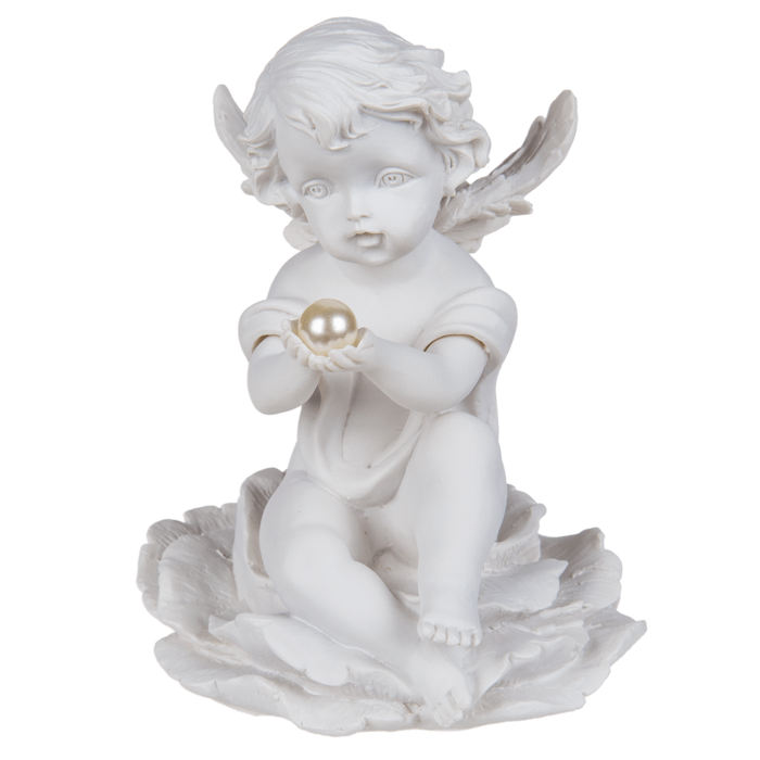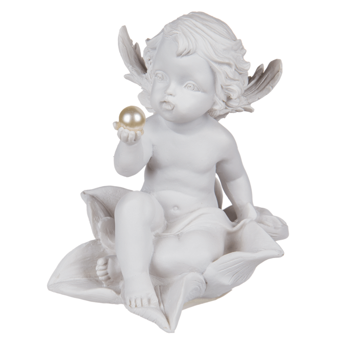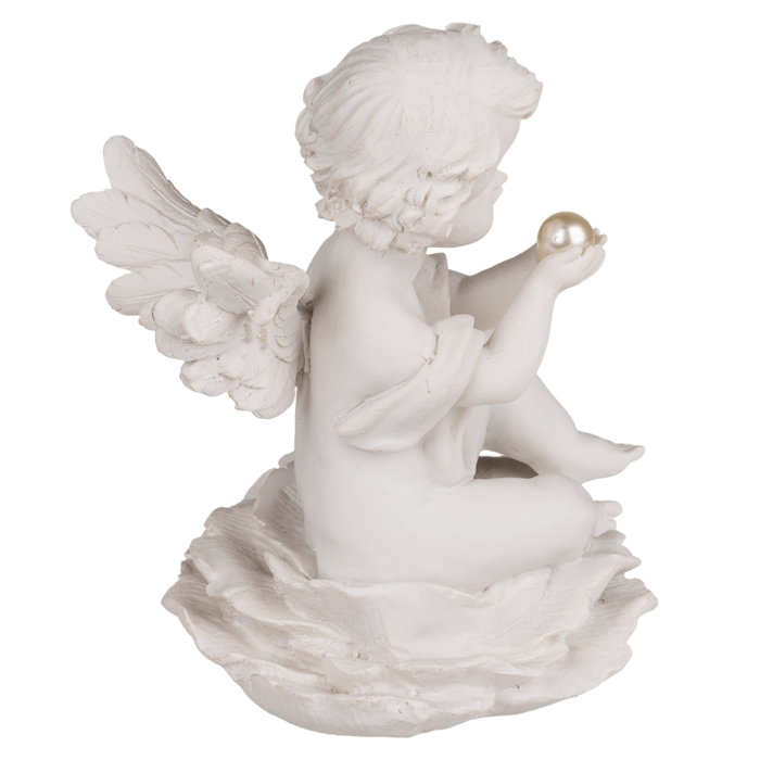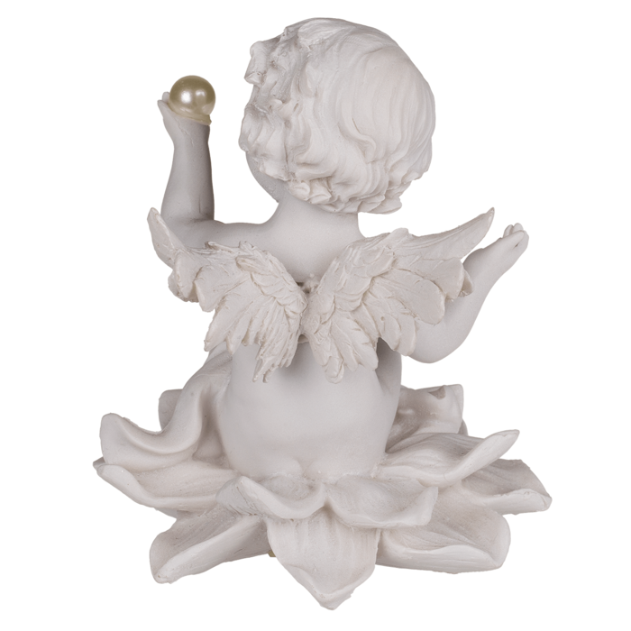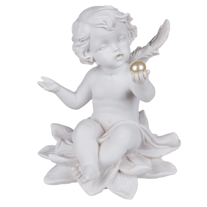 Urocza i pełna wdzięku figurka siedzącego aniołka z perłą to połączenie subtelności i duchowej symboliki. Wykonana z wysokiej jakości polirezyny, przedstawia aniołka siedzącego na płatkach kwiatu, który trzyma w dłoniach połyskującą perłę – symbol czystości, mądrości i nadziei. Ręcznie dopracowane detale, delikatne rysy twarzy i precyzyjne skrzydła sprawiają, że każda figurka zachwyca realizmem i spokojem. Idealna jako ozdoba wnętrza, prezent komunijny, pamiątka chrztu lub symboliczny upominek.