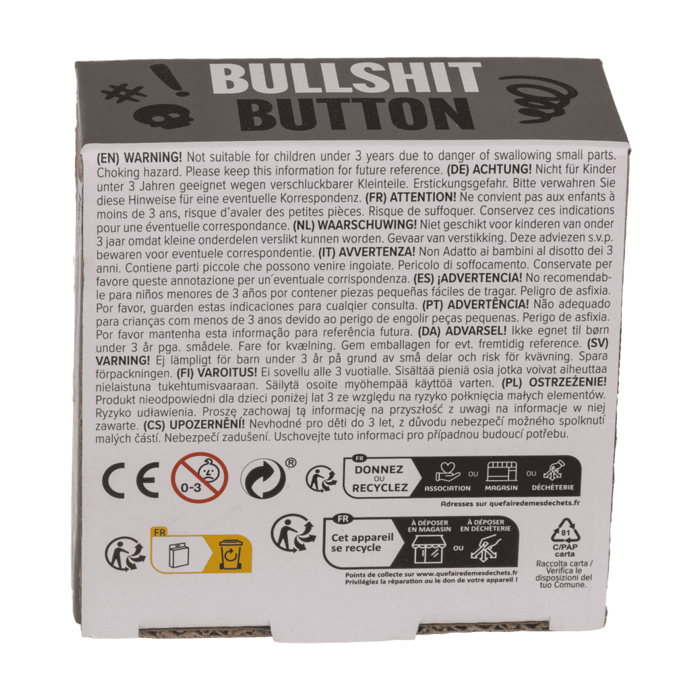 Czasami w pracy, w domu albo na imprezie słyszysz coś tak naciąganego, że aż trudno zachować pokerową twarz. Właśnie po to powstał Bullshit Button – wielki, czerwony przycisk, który po naciśnięciu wykrzykuje sześć różnych, zabawnych dźwięków. Zamiast dyplomatycznego uśmiechu możesz jednym kliknięciem ogłosić całemu światu, że właśnie ktoś opowiada… no cóż – totalne „bullshit!”.