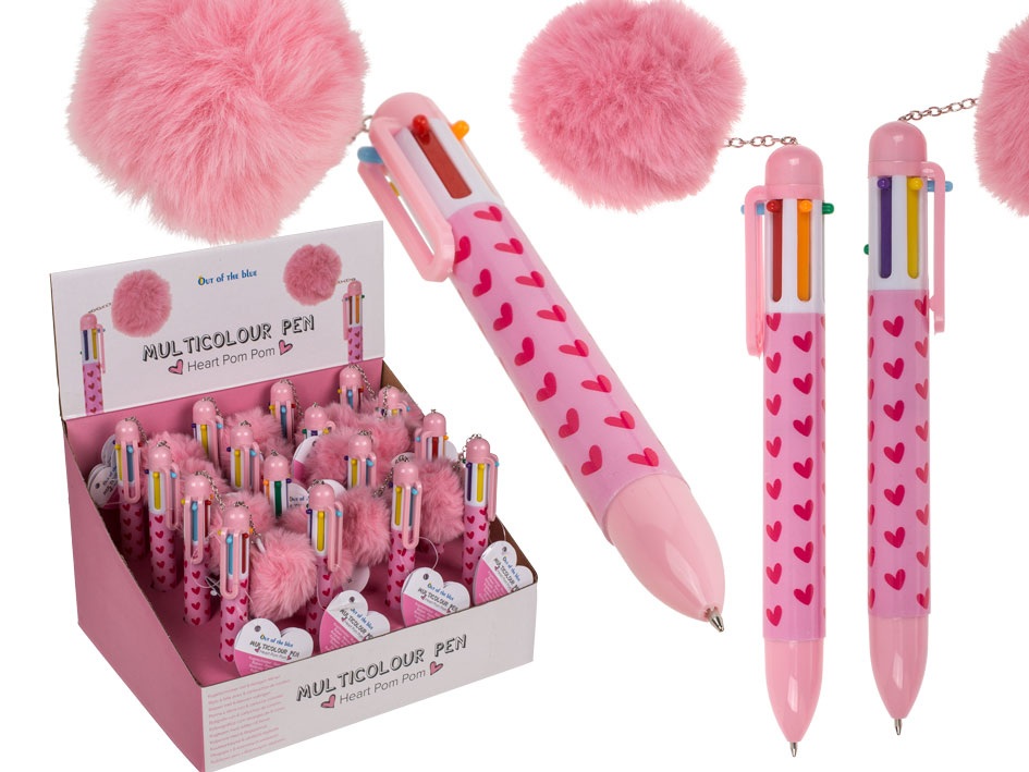Jeśli istnieje długopis, który potrafi poprawić humor jednym kliknięciem, to właśnie ten! Różowy długopis z serduszkami, wyposażony w aż 6 kolorowych wkładów, to absolutny hit dla wszystkich, którzy lubią łączyć praktyczność z odrobiną słodkiego stylu. A na dodatek – mięciutki, puchaty pompon Heart Pom Pom, który zwisa z górnej części długopisu i sprawia, że każdy szkolny zeszyt, kalendarz czy biurko wygląda o wiele milej.