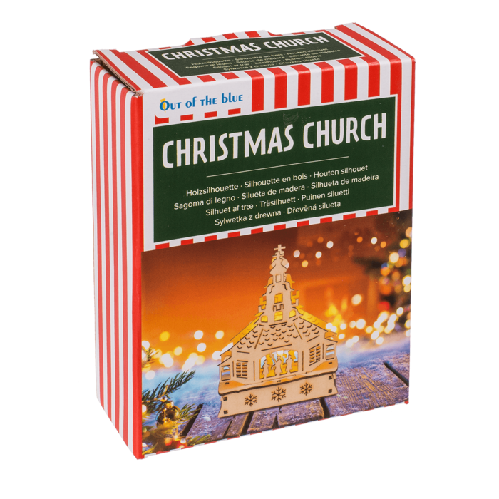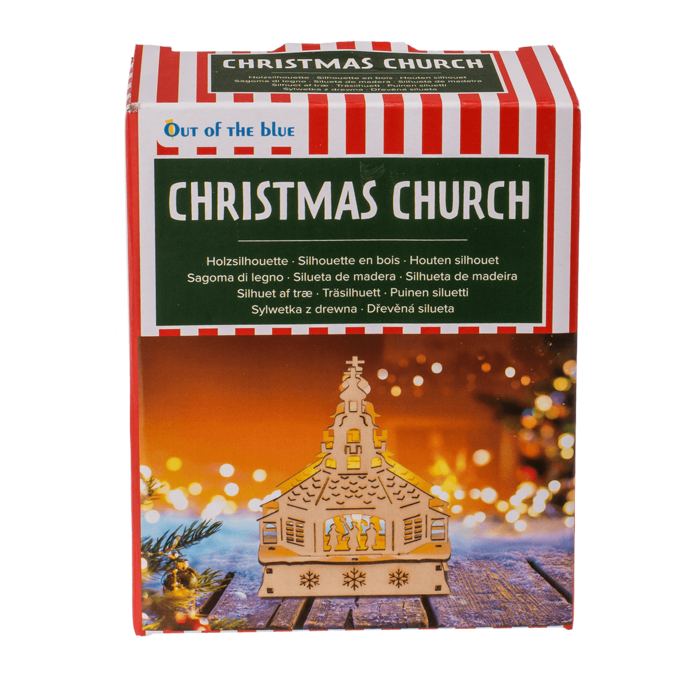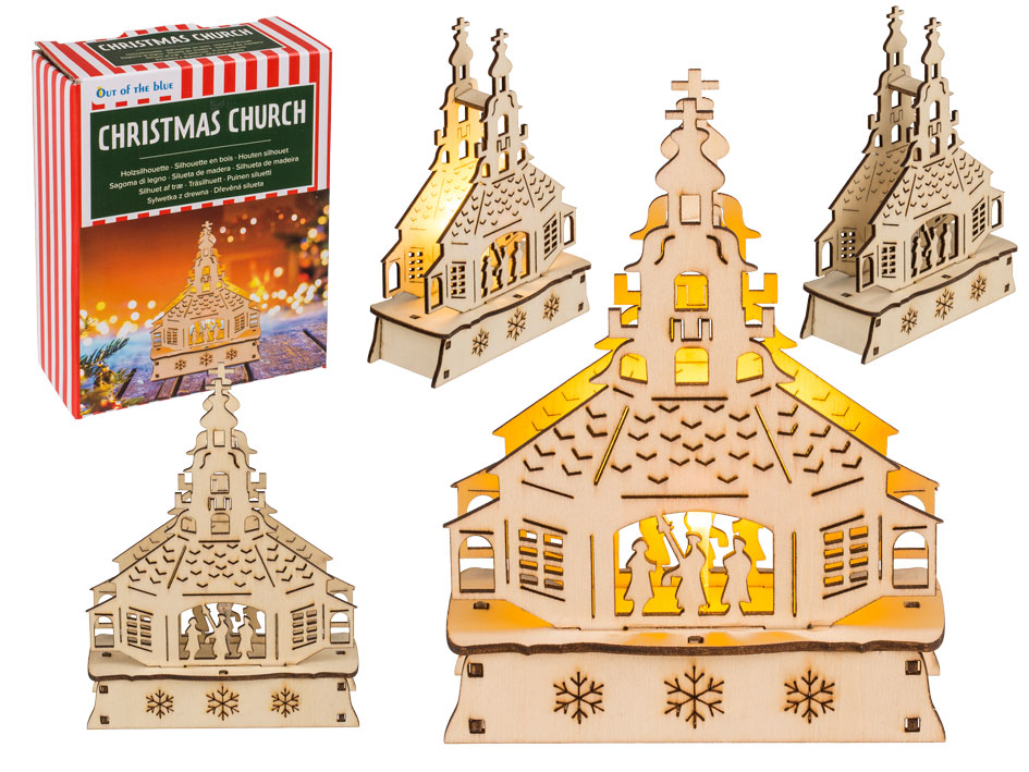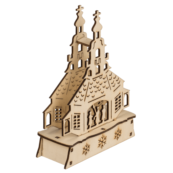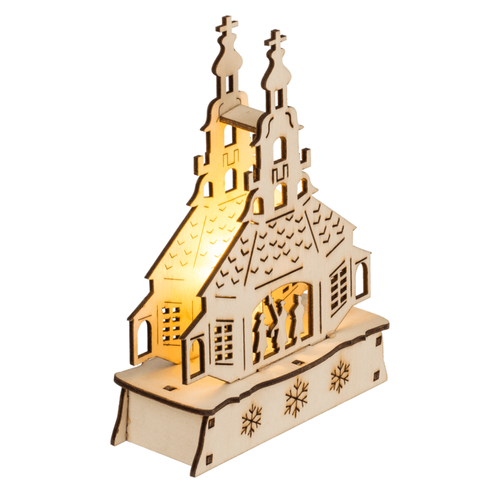 • Dekoracyjny kościółek z drewna z podświetleniem LED