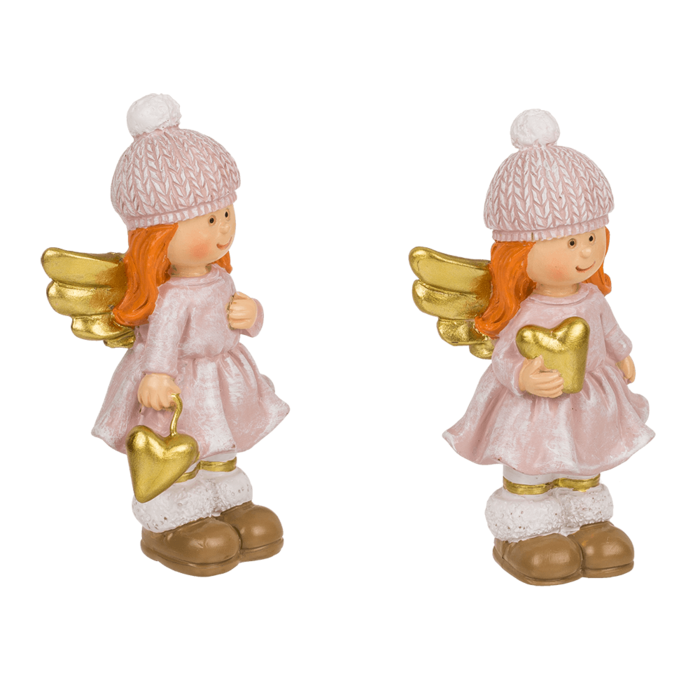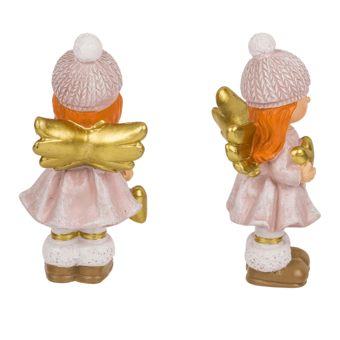 Delikatna figurka aniołka z zimową czapeczką i złotym serduszkiem to wyjątkowa ozdoba, która wnosi do wnętrza ciepło, spokój i świąteczny urok. Wykonana z polirezyny, zachwyca dbałością o detale – od faktury wełnianej czapki po połyskujące złote skrzydła. Aniołek symbolizuje opiekę i miłość, dlatego idealnie nadaje się na prezent lub dekorację stołu, półki czy parapetu w okresie Bożego Narodzenia. Dostępny w dwóch wzorach.
