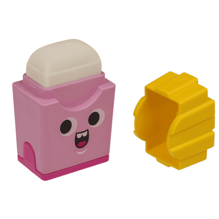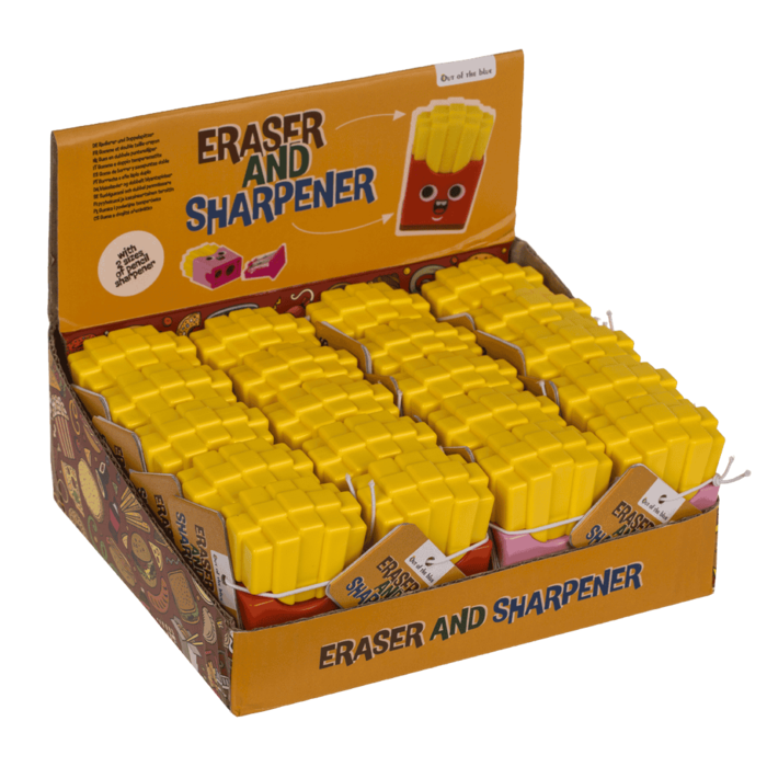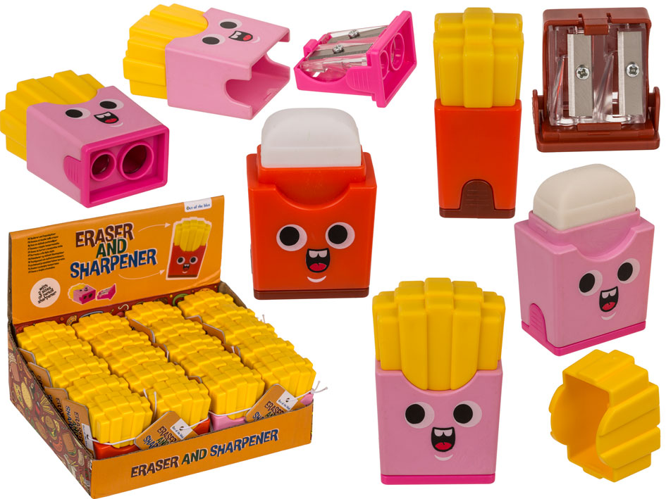 Oto gadżet szkolny, który wywołuje uśmiech zanim jeszcze trafi do piórnika. Gumka z podwójną temperówką w kształcie porcji frytek to połączenie praktyczności, humoru i uroczego designu. Z jednej strony miękka gumka do ścierania schowana w zabawnej obudowie, z drugiej – podwójna temperówka, dzięki której zastruganie ołówka staje się znacznie przyjemniejsze.
