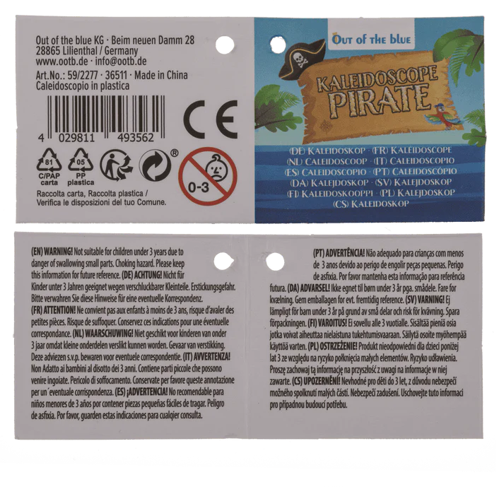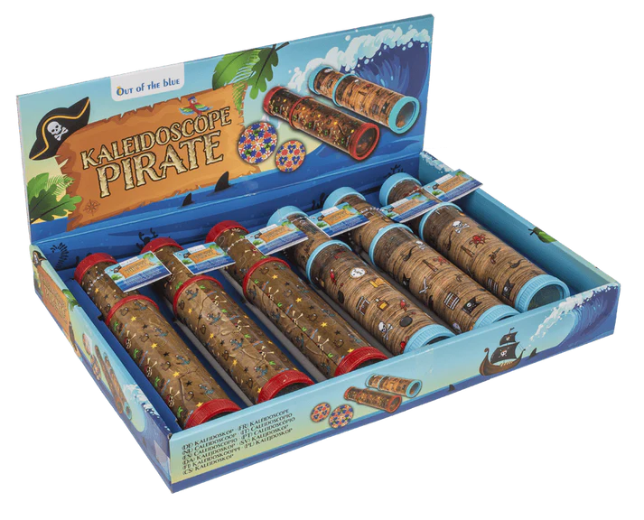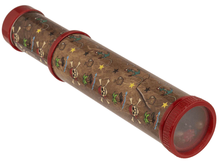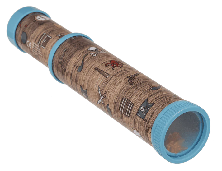 Wystarczy przyłożyć do oka i przekręcić, aby wyruszyć w barwną, piracką podróż. Kalejdoskop z motywem piratów to klasyczna zabawka w przygodowym wydaniu – pełna kolorowych, symetrycznych wzorów, które zmieniają się przy każdym ruchu. Czaszki, kotwice, skrzynie skarbów i morskie symbole na obudowie wprowadzają klimat dalekich wypraw i tajemniczych wysp.