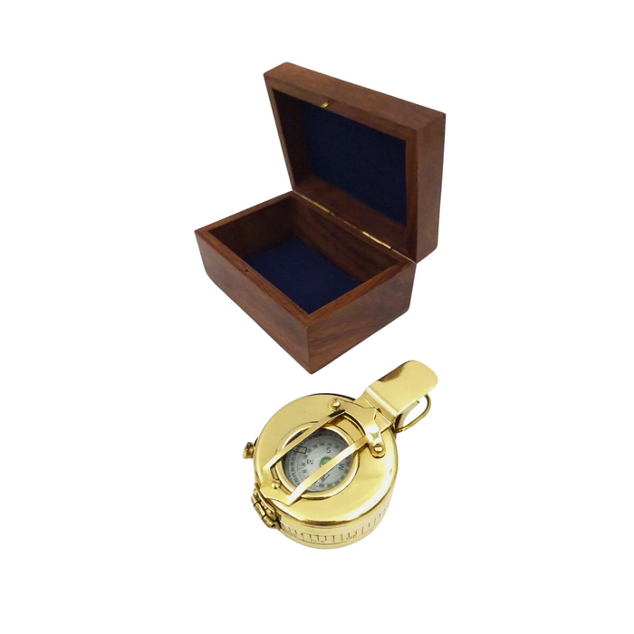 - Mosiężny kompas inżynierski z lusterkiem i przyrządami celowniczymi
