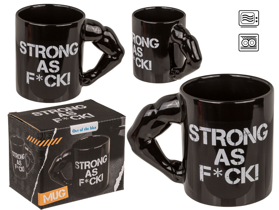 Ten kubek nie potrzebuje słów – jego design mówi sam za siebie. Mocny, wyrazisty, w kolorze czerni, z uchwytem w kształcie umięśnionego bicepsa i napisem STRONG AS F*CK. Idealny dla tych, którzy zaczynają dzień od solidnej dawki kofeiny i siły. Kubek, który przyciąga uwagę, motywuje i świetnie sprawdzi się jako prezent dla osób o silnym charakterze lub z poczuciem humoru. Zapakowany w efektowne pudełko – gotowy do wręczenia.