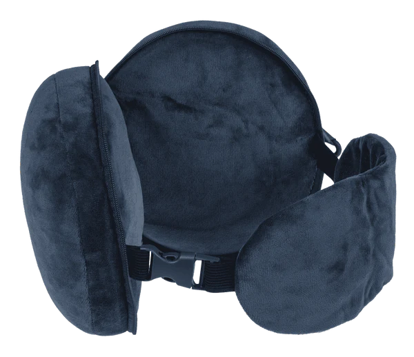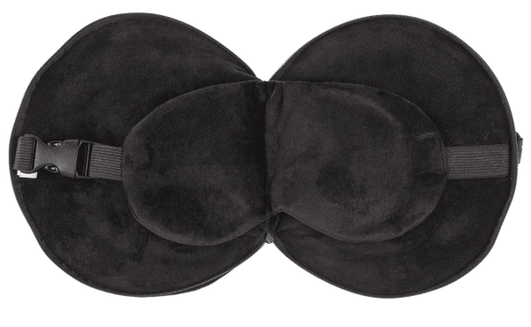 W zestawie znajduje się opaska na oczy, która skutecznie ogranicza dostęp światła i sprzyja wyciszeniu oraz regeneracji. Całość uzupełnia praktyczny zaczep, umożliwiający przypięcie poduszki do plecaka, torby lub walizki, co ułatwia transport i przechowywanie.