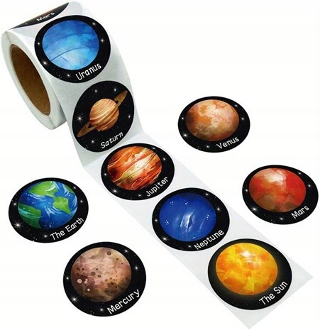 Naklejki Planety i Słońce – Rolka 500 Sztuk | Motywacyjne i Dekoracyjne | Kemis.pl